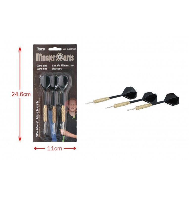Blister de 3 fléchettes 24 g en acier, ailettes PET, précises et résistantes. Idéal pour joueurs débutants ou confirmés, pour s'amuser ou s’entraîner au jeu de fléchettes à la maison.
