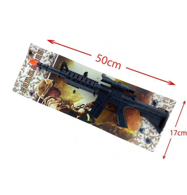 Découvrez ce fusil bruiteur 'Commando' de 44 cm, présenté sur une carte, qui ravira les enfants passionnés par les jeux d'action. Avec ses sons dynamiques et son aspect réaliste, ce fusil apporte une dimension supplémentaire aux scénarios de jeu. Il est conçu pour résister aux aventures les plus intenses.