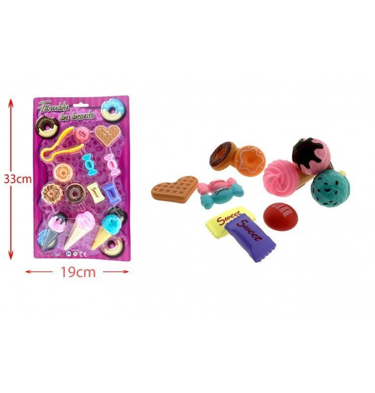 Blister jeu de desserts : des douceurs plus vraies que nature ! Ce set de jeu comprend des desserts factices réalistes pour que les enfants s'amusent à faire semblant de cuisiner.